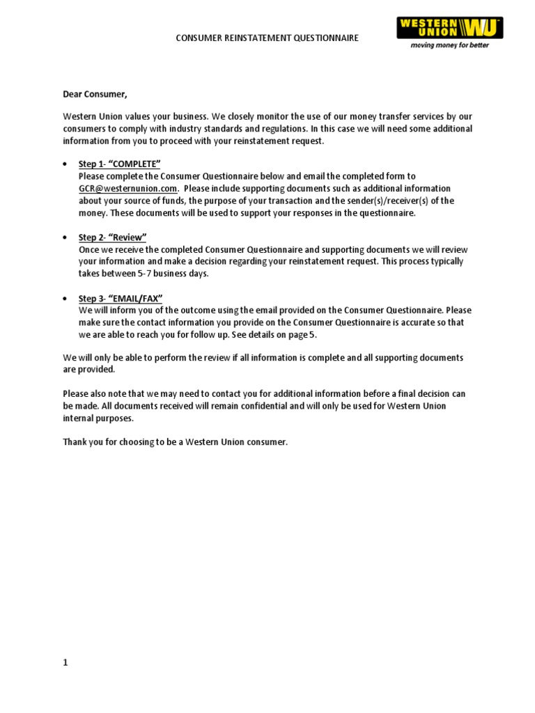 Global Reinstatement Form English Western Union Paycheck